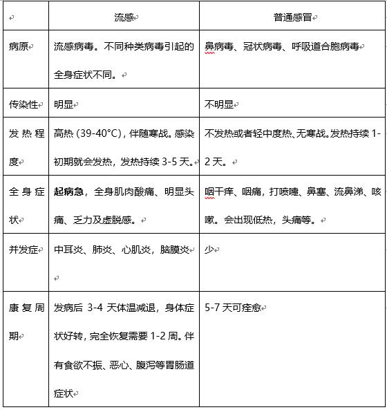 王新卫主任介绍,流行性感冒(流感)是由流感病毒引起的急性呼吸道感染。流感患者和隐性感染者是流感的主要传染源。为了方便大家了解流感和普通感冒的区别,王新卫为大家制作了一张图,网友们可以根据自己的症状进行判断。