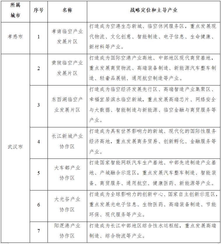 十二区协同,即东西湖临空产业发展片区、黄陂临空产业发展片区、孝南临空产业发展片区、鄂州临空产业发展片区、黄冈临空产业发展片区、黄石临空产业发展片区、临空创新协作示范片区、长江新城产业协作区、大光谷产业协作区、大车都产业协作区、阳逻港产业协作区、葛店产业协作区等产业协作发展片区;