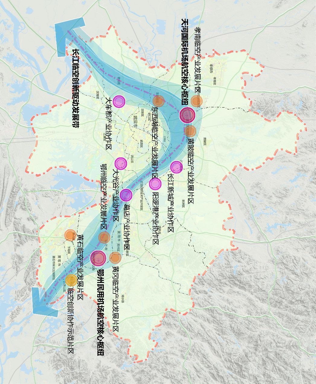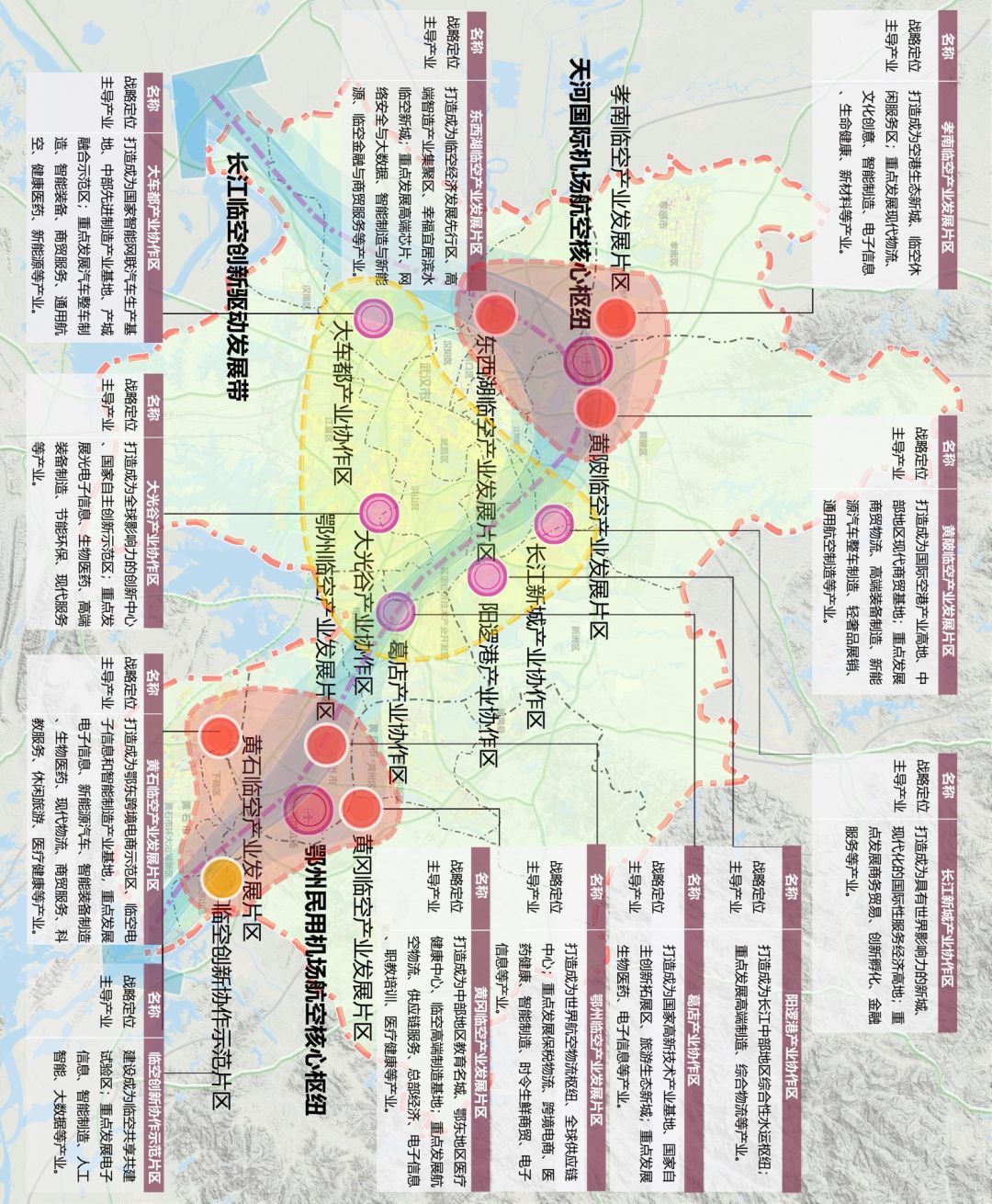 依托沪渝高速、武鄂高速、武英高速、G316、武鄂城际等复合型的交通通道,集中武、孝、鄂、黄、黄临空产业资源,形成产业联动、空间联结、功能贯穿的临空创新驱动发展带,打造成为长江经济带高质量发展的重要支撑。