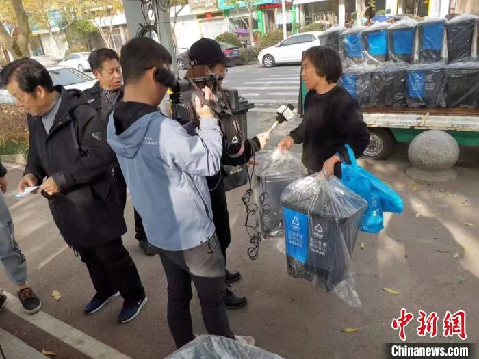 当地一位居民“喜提”一对分类垃圾桶,并接受本地媒体采访 永嘉县委宣传部供图
