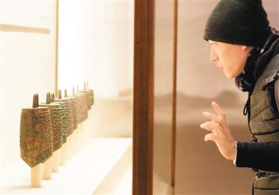 参观者在国博欣赏刘家洼遗址出土的钮钟 新华社记者 金良快摄