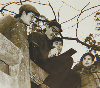 年轻时的曾孝濂(左二)在创作中。