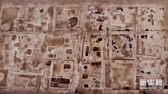这是12月23日无人机拍摄的濉溪明清时期酿酒作坊遗址。记者从安徽省文物考古研究所获悉,近期在濉溪县发现一处明清时期酿酒作坊遗址,发掘面积3000平方米。 该作坊遗址位于濉溪县城关镇北关的沱河路北侧,去年在工程施工时意外被发现。截至目前,在遗址内发现了比较完备的蒸馏酒酿酒设备系统。新华社发(黄博涵摄)
