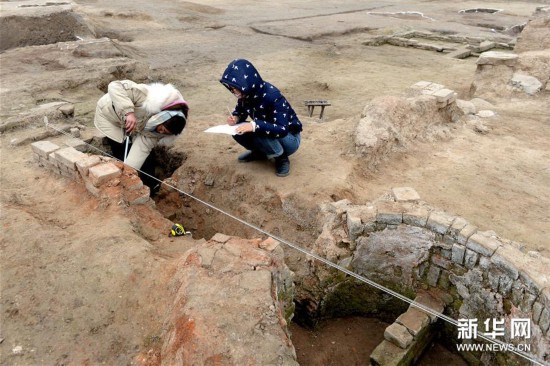12月23日,在濉溪明清时期酿酒作坊遗址考古发掘现场,考古人员在进行测量绘图。新华社发(黄博涵摄)