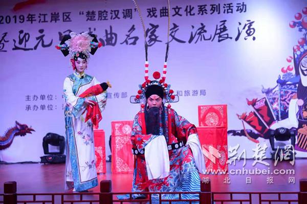 荆楚网客户端—荆楚网消息(记者张扬 通讯员曹景)传承中华优秀传统文化,振兴武汉戏曲“大码头”。12月24日,江岸区举办的“楚腔汉调”戏曲文化系列活动迎来重头戏,迎元旦戏曲名家交流展演将系列活动推向高潮。从四面八方赶来的百余名戏迷票友,让汉口历史文化展示中心三楼的“楚腔汉调”戏苑座无虚席,在这座有着历史文化韵味的大戏台里,感受了一场名家名曲的魅力。