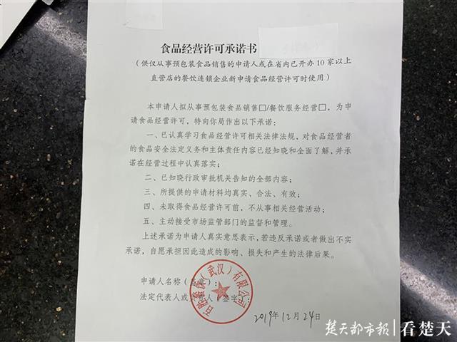 楚天都市报12月24日讯(记者张理晶 通讯员周舜)今日上午9时,记者来到江汉区行政审批局,看到即将开业的百胜餐饮有限公司(江汉区南国中心店)的相关负责人正在办证窗口提交“食品经营许可承诺书”,通过审核后现场就拿到了《食品经营许可证》。这是江汉区第一家不走现堪审批流程拿到经营许可证的“免检”餐饮企业。