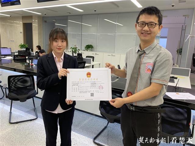 上午9时许,百胜餐饮有限公司(江汉区南国中心店)的相关负责人叶先生在办证窗口提交了申报材料和承诺书,工作人员马上进行仔细核对。仅仅等待1个小时,叶先生就拿到了《食品经营许可证》,他高兴地说:“没想到现在办证这么方便快捷,今天拿到许可证后我们店随时就可以开业了!”。