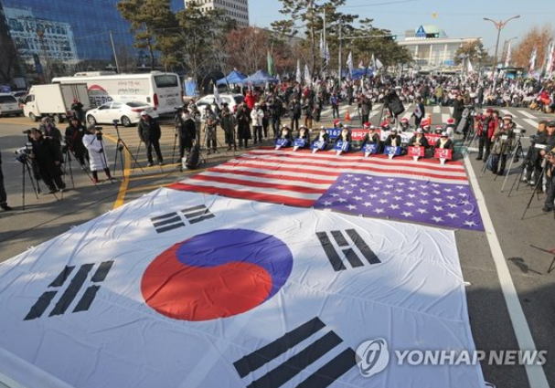 24日,韩国保守派民众集会,呼吁释放朴槿惠(韩联社)