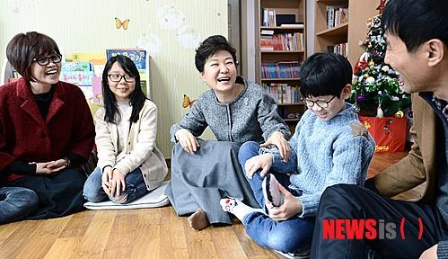 2013年圣诞节,时任韩国总统朴槿惠看望儿童(纽西斯通讯社)