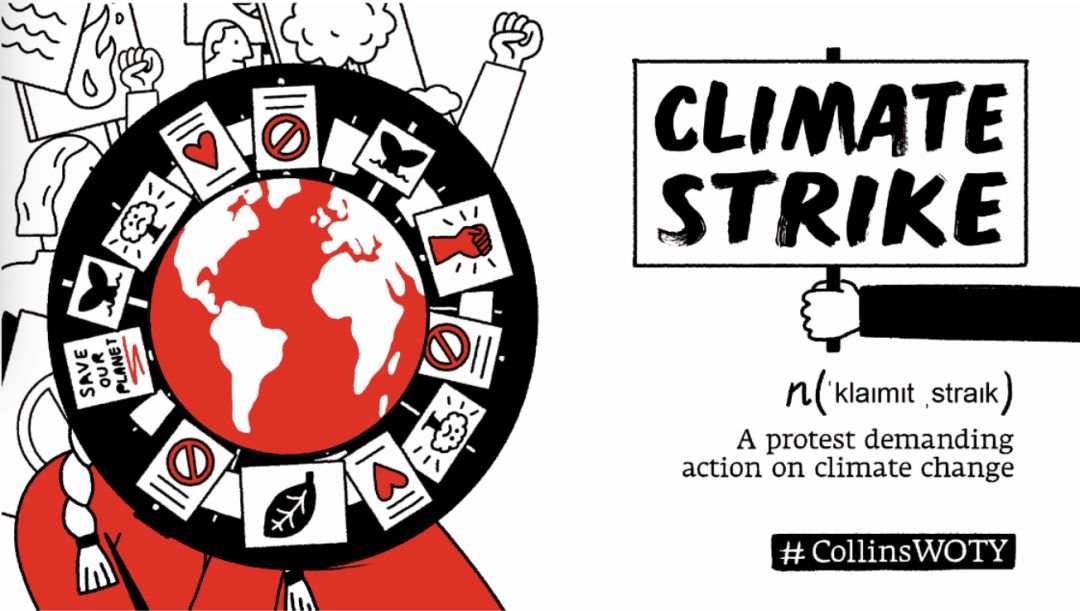 “气候罢工”当选《柯林斯词典》的2019年度词语 图片来源:《柯林斯词典》