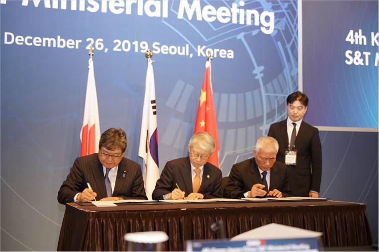 今日(12月26日),第四届中日韩科技部长会议在首尔举行。中华人民共和国科学技术部部长王志刚、日本国文部科学省大臣萩生田光一和大韩民国科学技术信息通信部长官崔起荣出席。