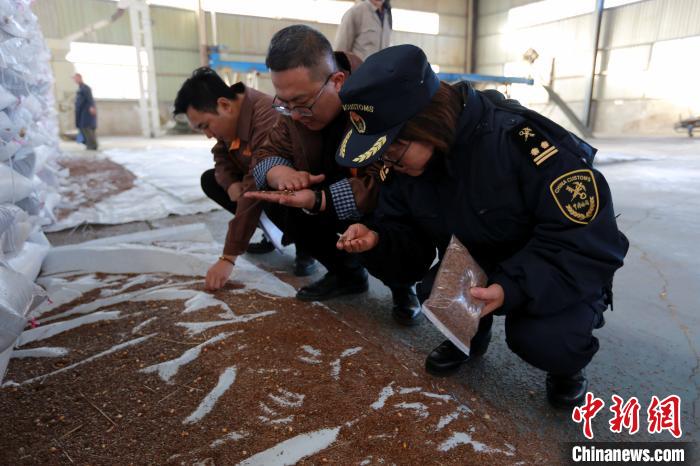 银川海关对宁夏首批进口的哈萨克斯坦亚麻籽进行现场查验。 胡诗瑶 摄