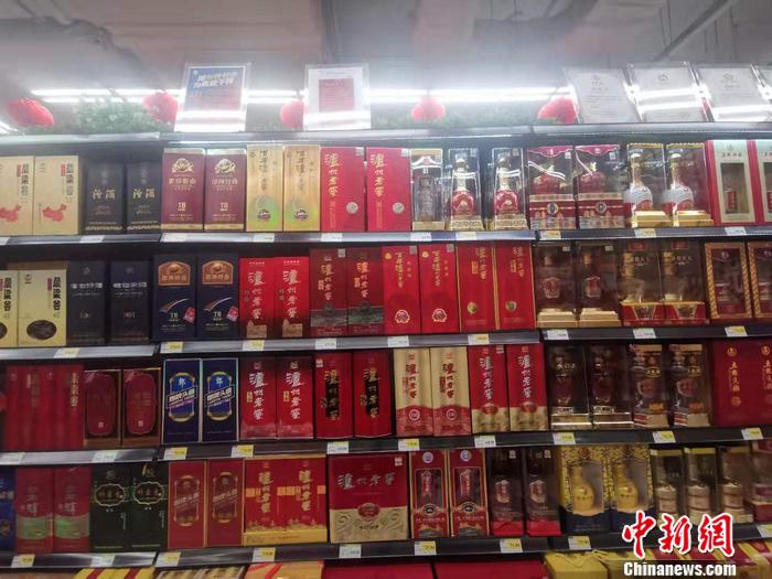 资料图:北京一家超市里的白酒区。 谢艺观 摄