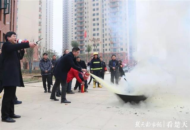 12月24日上午,龙王庙社区与百步亭社区联合发起冬季消防安全演习活动。龙王庙社区金时代"红色物业"志愿者通过讲解、演示、实操,为居民普及防火急救、消防安全等知识。