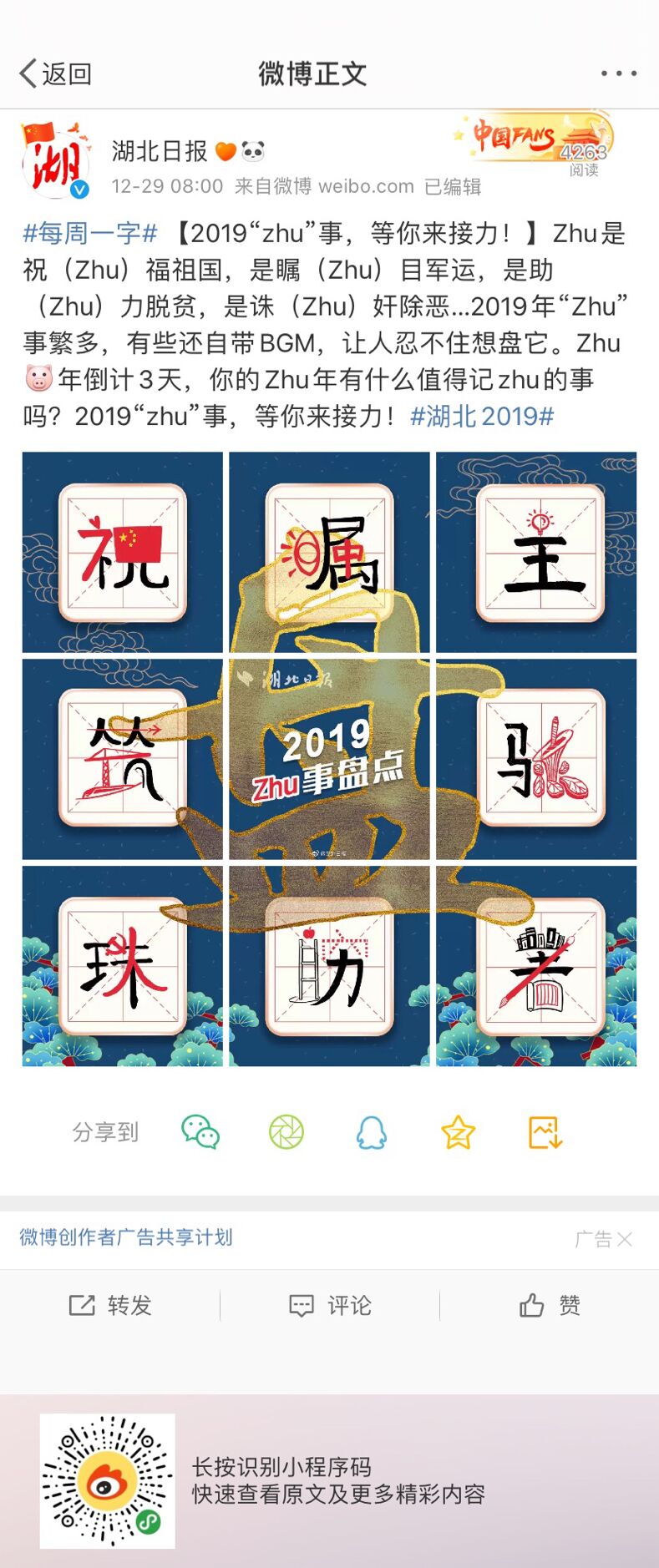 Zhu是祝福祖国,也是瞩目军运;Zhu是助力脱贫,也是诛奸除恶;2019年“Zhu”事繁多,有些还自带BGM,让人忍不住想盘它。微盘点2019年度汉字你给谁点赞?