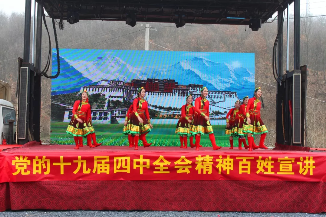 为深入学习贯彻党的十九届四中全会精神,丰富群众文化生活,让基层百姓共享文化成果,把十九届四中全会精神引向深入,传遍千家万户。12月29日下午,由曾都区文化和旅游局、洛阳镇人民政府、武汉博大科技集团联合举办,以“文化下乡、城乡共融暨党的十九届四中全会精神百姓宣讲”为主题的活动,在洛阳镇九口堰新四军五师旧址纪念馆广场举行。