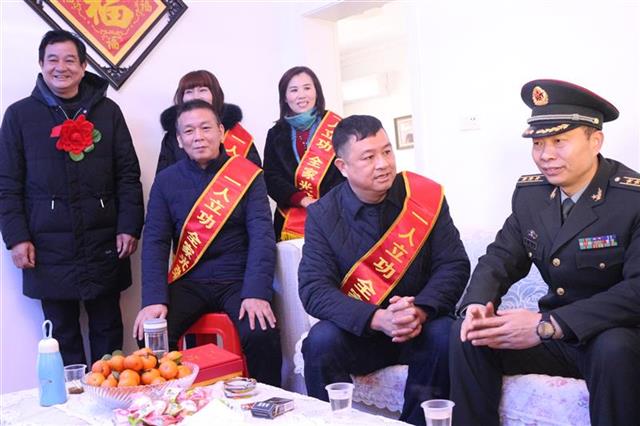 湖北日报讯(通讯员刘晓平、陶成龙、方宏)12月27日,汉川市仙女山街道办事处二名现役军官雷晋武、夏能刚家中,像过年一样热闹,汉川市人武部、空降兵军某旅、汉川市退役军人事务局等军地工作人员将三等功喜报和慰问金送到家中,全家人感到骄傲自豪。