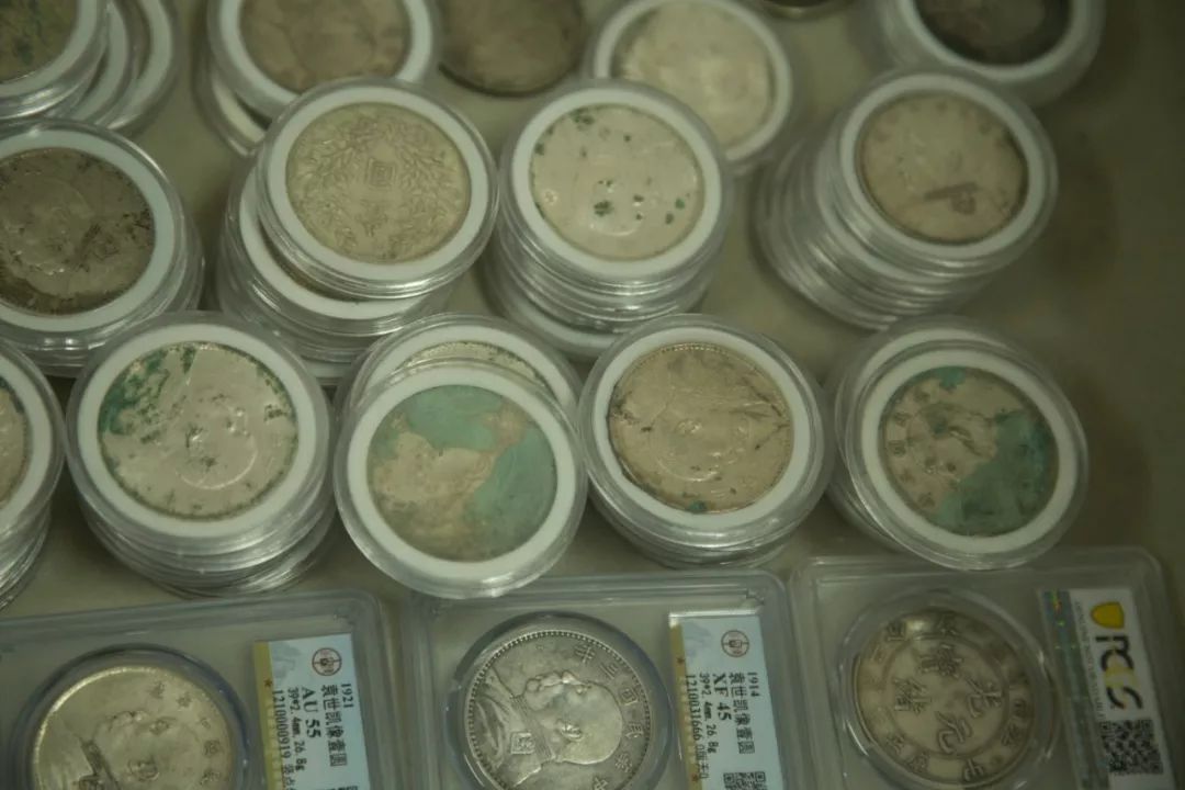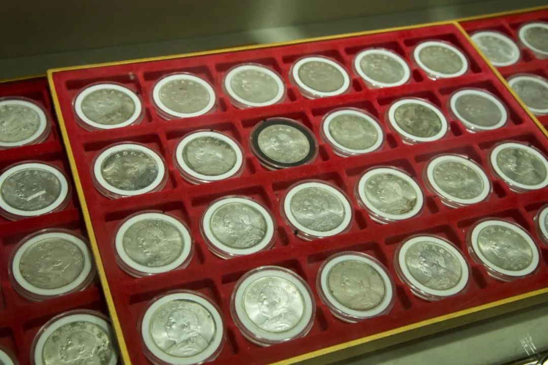 在柜台里,有很多银元看起来像是“生锈”的样子,罗先生解释道,“这种是属于包浆了,因为以前老百姓的保存方式不像现在这样完善,只能放在罐子里面,然后埋在自家的后院。有些地方比较潮湿,久而久之,它就长出这样的包浆了。”