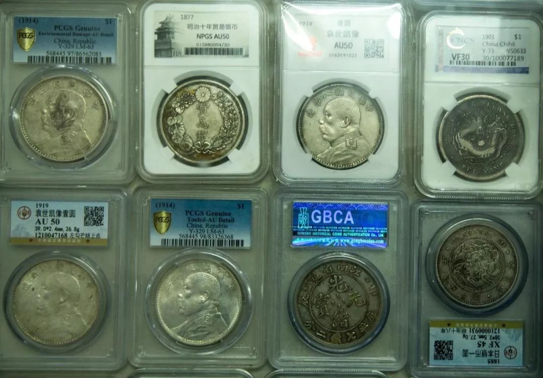 在熟人买卖之后,为了走向更广阔的市场,“鉴定”成为一种必然。“我们那时候最早是把钱币寄到美国去,后来国内有了代理,才方便了很多。包括现在的这些钱币,既有国外机构鉴定的,也有国内机构鉴定的。”
