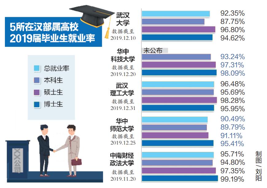 大学生留鄂、留汉意愿是否增强?哪些大企业最受欢迎?考研深造和出国留学的人更多了吗?本科生和研究所薪酬差距多大?这两天,武汉大学、华中科技大学、武汉理工大学、华中师范大学、中南财经政法大学等在汉部属高校发布了2019年度毕业生就业质量报告。楚天都市报记者进行了详尽分析,为准大学生和准毕业生提供参考。