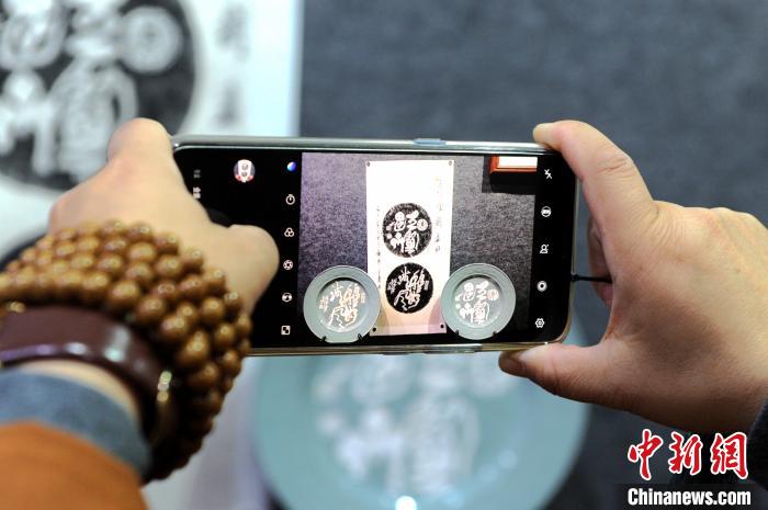 书法爱好者拿出手机拍摄大可的艺术作品。 张金川 摄