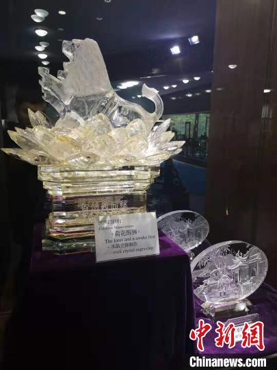 “荷花绽放,全城欢动。”吴子熊玻璃艺术馆馆长吴刚介绍,1999年他和父亲吴子熊创作了一尊大型水晶雕刻作品《荷花醒狮》,用人造水晶磨片粘合制成的荷花为底,立体雕塑形式呈现一只待醒的雄狮半蹲于荷花之上,寓意期盼澳门回归祖国怀抱。