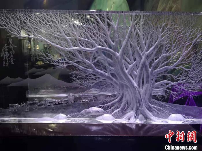 艺术馆内满目晶莹剔透的玻雕作品,一件名为《生命的力量》的玻雕甚是引人注目,作品中的大树永远向上伸展枝干拥抱天空。吴刚介绍道:“我父亲常常驻足于前,他觉得自己就像是这棵树,不屈不挠,坚韧而又从容不迫。”