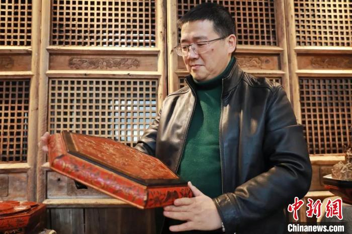 旧时,富家大户人家嫁女,发嫁妆的队伍绵延数里,谓之“十里红妆”。在浙江省台州市椒江区,今年47岁的民间收藏达人李林栋,收藏“十里红妆”物件已有20多年,他所藏物件甚广,桶盘、衣柜、橱柜、桌凳、木箱、果盘、拗斗、提桶、梳妆盒等,应有尽有。