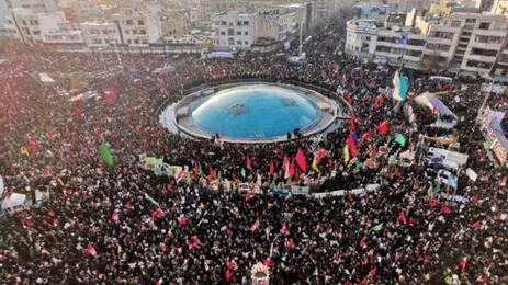 苏莱曼尼遗体由其支持者抬着走向德黑兰最大广场,街头挤满了前来哀悼的人