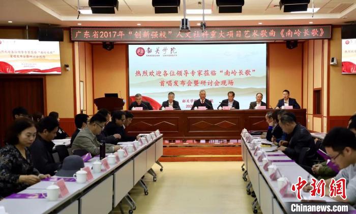 记者7日从主创者方面获悉,艺术歌曲《南岭长歌》首唱发布会暨“南岭音乐文化”学术研讨会6日在韶关学院举行,该艺术歌曲《南岭长歌》以中国南岭为创作背景,用浓郁的岭南音乐风格曲调,以抒情优美的旋律主题描绘了中国南北地域的“分水岭”——南岭的大自然神奇。