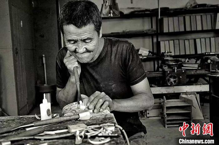 图为乌力吉在制作马头琴共鸣箱。受访者供图