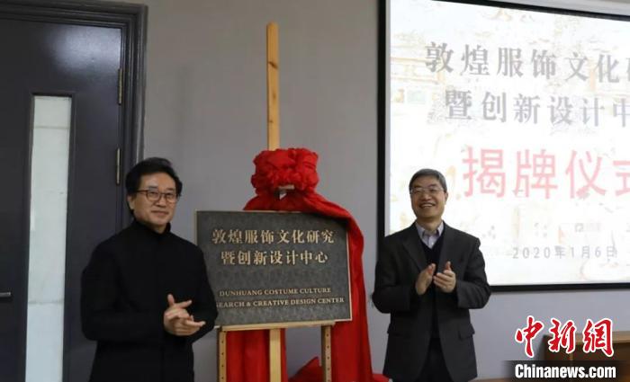 1月6日,敦煌服饰文化研究暨创新设计中心在敦煌研究院美术研究所举行揭牌仪式。敦煌研究院供图