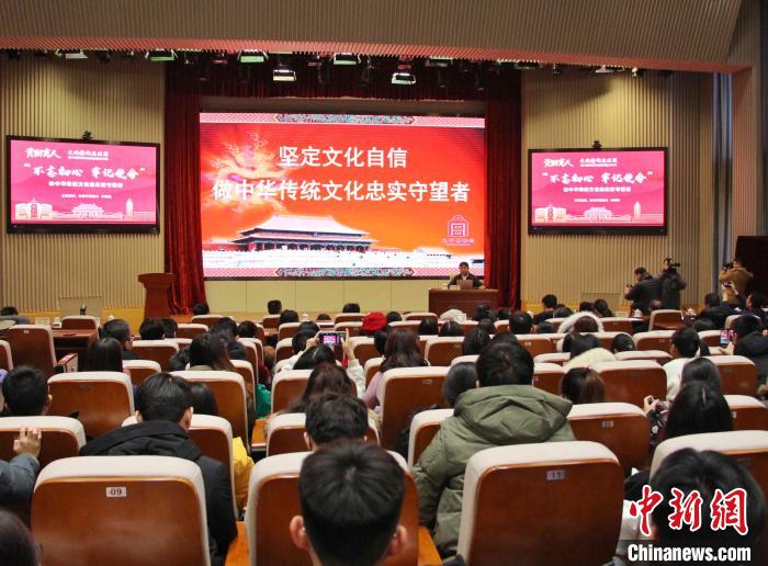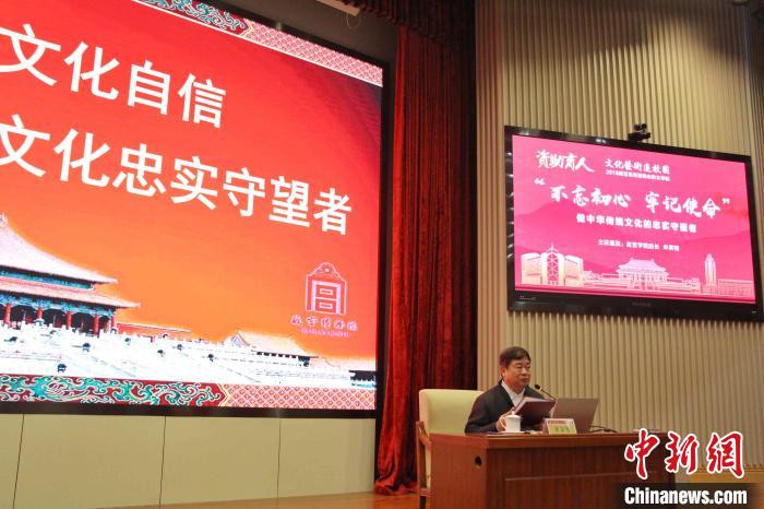 单霁翔为师生们带来题为“不忘初心 牢记使命——做中华优秀传统文化的忠实守望者”的报告。 赵晓 摄
