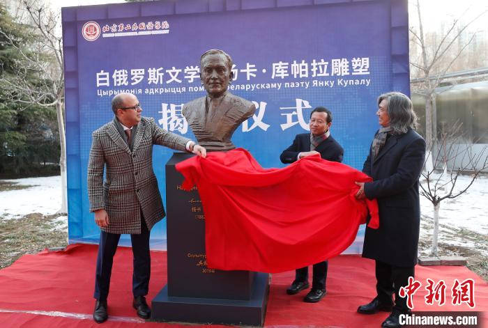 应白俄罗斯驻华大使馆邀请,中国美术馆馆长、著名雕塑家吴为山创作的白俄罗斯诗人《杨卡·库帕拉》像永久陈列于北京第二外国语学院的落成仪式8日在京举行。