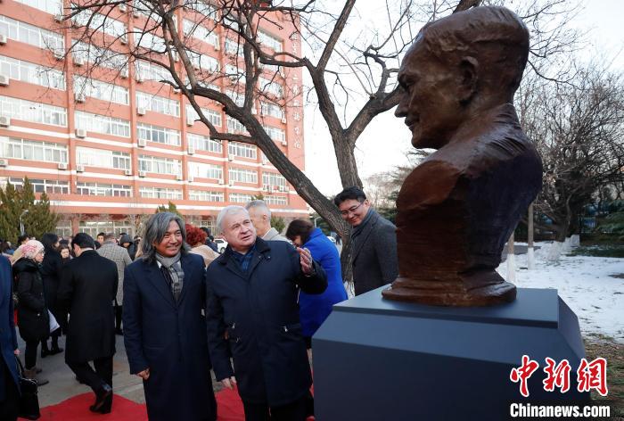 雕像在北京第二外国语学院揭幕 杜洋 摄