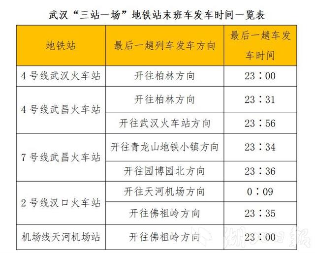 附:《武汉“三站一场”地铁站末班车发车时间一览表》