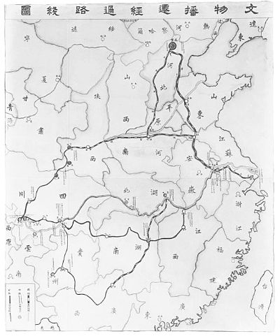 文物播迁经过路线图(故宫博物院藏,1950年代绘制)