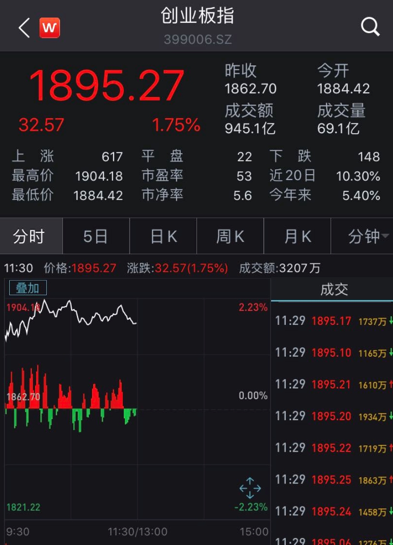中新经纬客户端1月9日电 周四(9日)早盘三大指数集体高开,创业板指一度涨超2%,重回1900点关口上方。市场震荡回升,消费电子概念再度表现活跃。截至11:30,沪指报3081.36点,涨幅0.47%;深成指报10820.96点,涨幅1.07%;创业板指报1895.27点,涨幅1.75%。