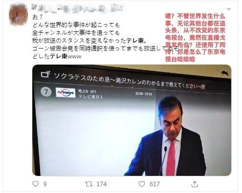 日本网友对东京电视台播放戈恩发布会表示意外。图片来源:日本社交媒体截图
