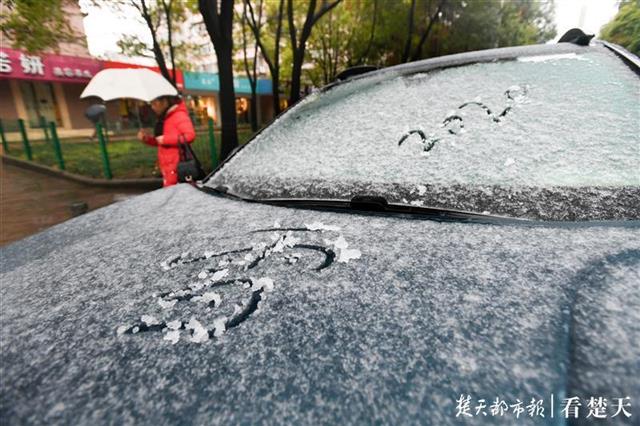 今日,2020年的第一场雪就这样悄然而至,雪花很小,不经意间给大地抹上了一层白纱。记者在百步亭停靠于路边的汽车上找到了它的身影。(楚天都市报记者邹斌摄影报道)
