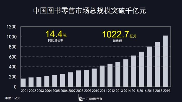 2019年全国图书零售市场规模继续保持增长。开卷供图
