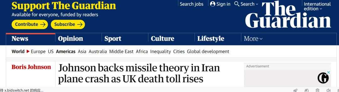 英国首相鲍里斯·约翰逊(Boris Johnson)在一份声明中表示,目前有“大量信息”表明,这架飞机是被伊朗导弹击落的。他也同时表示,这很可能是无意的。