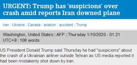 美媒称乌克兰失事客机系伊朗击落,特朗普也表态:我有我的怀疑