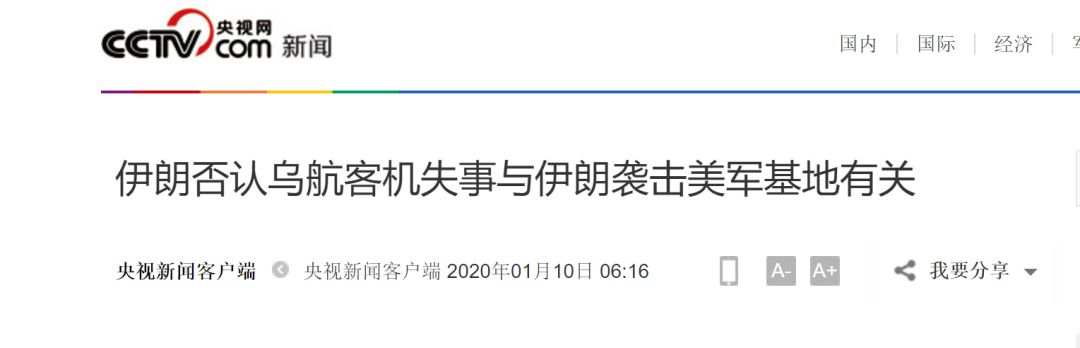 而在此之前,不少外媒早已把矛头指向伊朗,称失事飞机是被伊朗的防空导弹意外击落。对此,伊朗官员当地时间1月9日说,美国将加入对乌克兰客机失事事故的调查。伊朗方面直接否认客机失事与伊朗向美军驻伊拉克基地发射导弹有关的说法。还有伊朗媒体认为,美国情报就是伊朗敌人制造的一场阴谋。