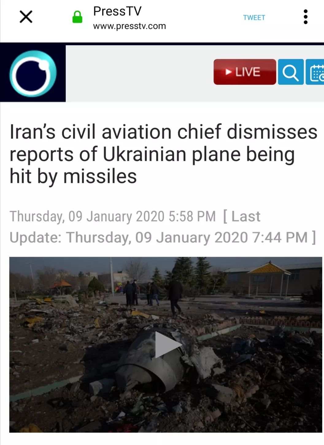 另据伊朗媒体Press TV最新报道,伊朗民航组织负责人阿贝扎德(Ali Abedzadeh)9日否认有关外媒称失事客机系伊朗击落的报道,并将这一说法称作“不合逻辑的谣言(illogical rumors)”。