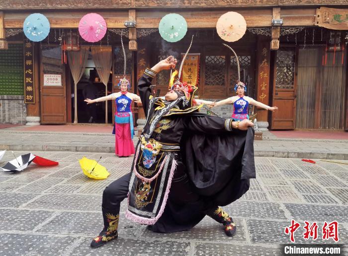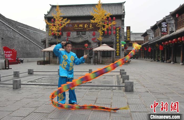 资料图:图为山东潍坊青州“非遗一条街”上的非遗展演。 赵晓 摄
