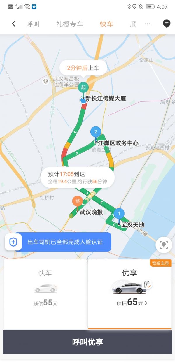 长江日报-长江网记者今日搭乘滴滴出行发现,可以在行程前输入目的地时,点击右侧“+”符号添加最多不超过三个途经点。而且平台将按照乘客填写的途经点按顺序依次规划行程路线,并根据此路线向乘客展示该路线的预估行程信息。