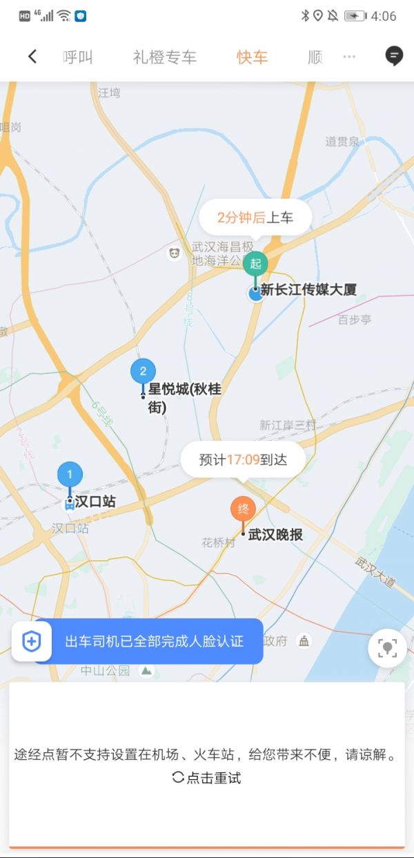 此外,由于途经点的停留时间不超过3分钟,长江日报-长江网记者发现在机场、火车站等重要交通枢纽区域不能设置为“途经点”。
