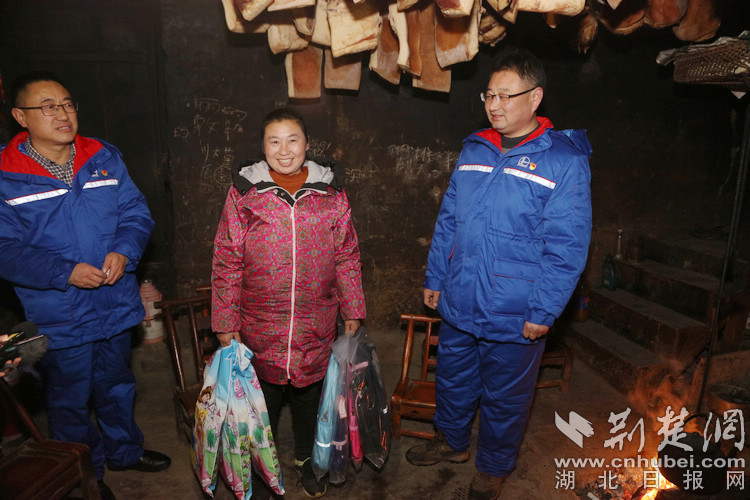 40多岁的田祚东是个老实巴交的农民,在武汉白沙洲的冷库当搬运工,每月4000元左右收入。妻子马先红有胰腺炎,常年用药,无法干重体力活,扶贫尖刀班把她请到村委会食堂帮厨,每月也能挣2000多元。他家的老房子还是几十年前的土坯房,年久失修残破不堪,相隔不远的一栋两层楼,就是他的新房子。“做房子有2万多元的补贴,现在水泥路通到了家门口。”田祚东拉着杨大阶和卢学东的手进屋。“今年的猪肉价格高,家里刚杀了三头年猪,卖猪的钱能过个好年。”田祚东指着房梁上挂满的腊肉说。