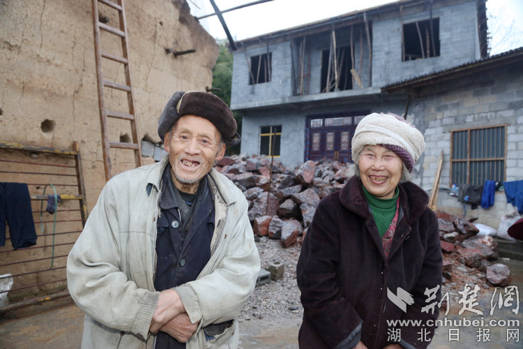 郑玉洲80多岁的父母站在新房前,露出了笑容。记者郑一鸣 摄